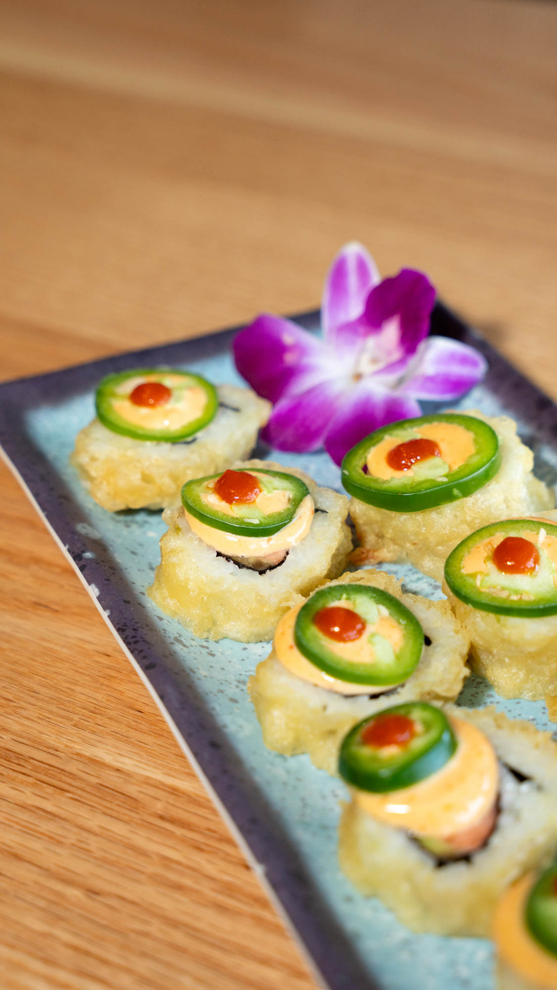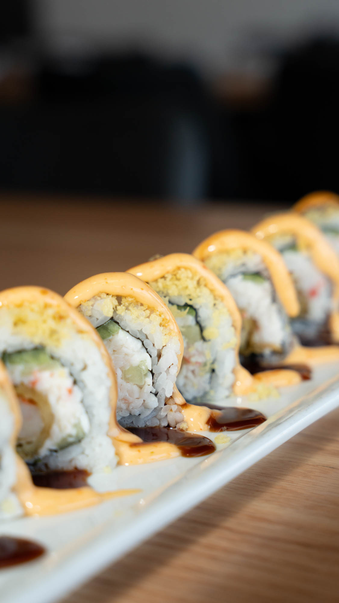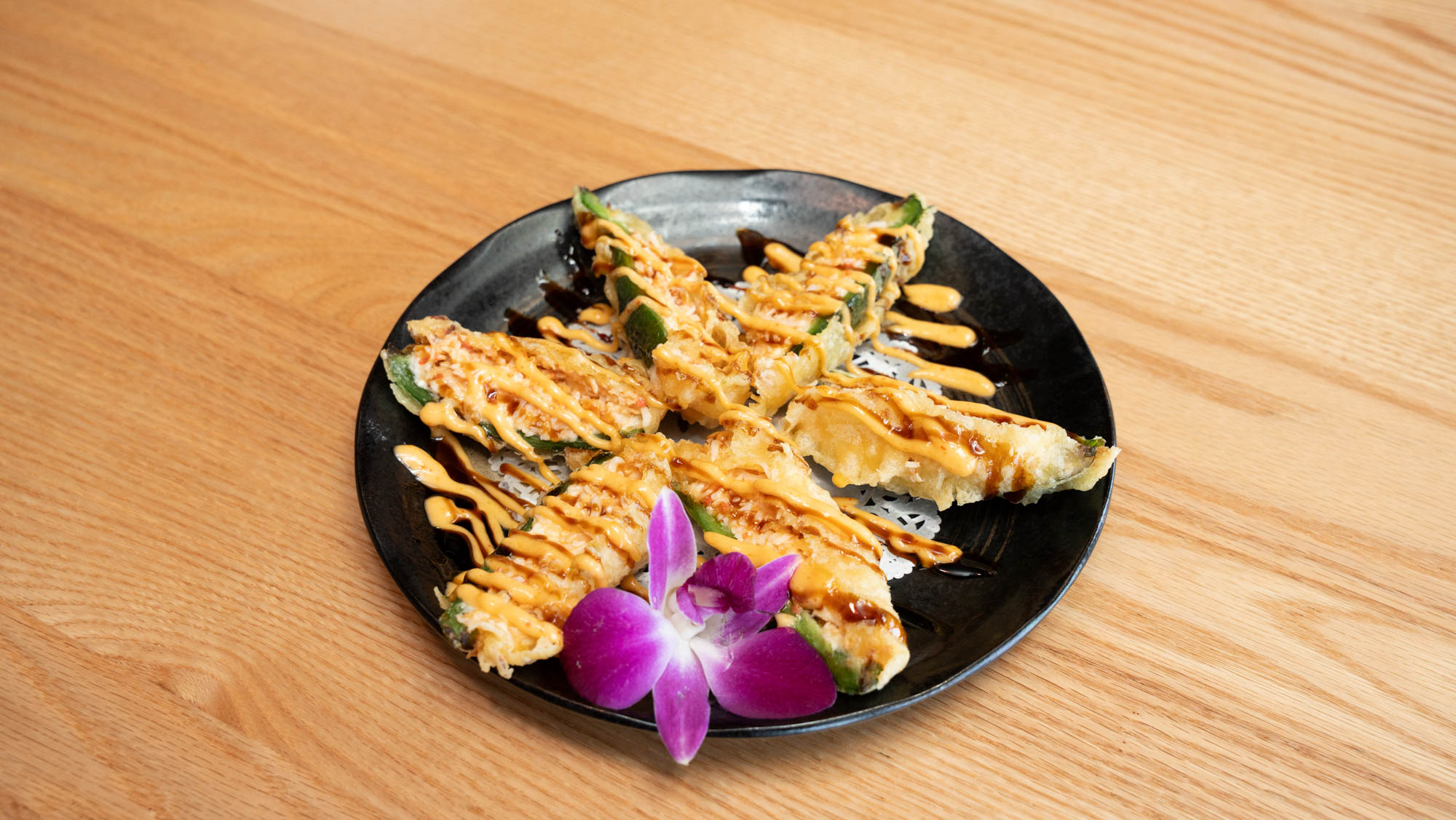 Spicy krab, cream cheese, jalapeno, topped w/ drizzled spicy mayo and eel sauce
